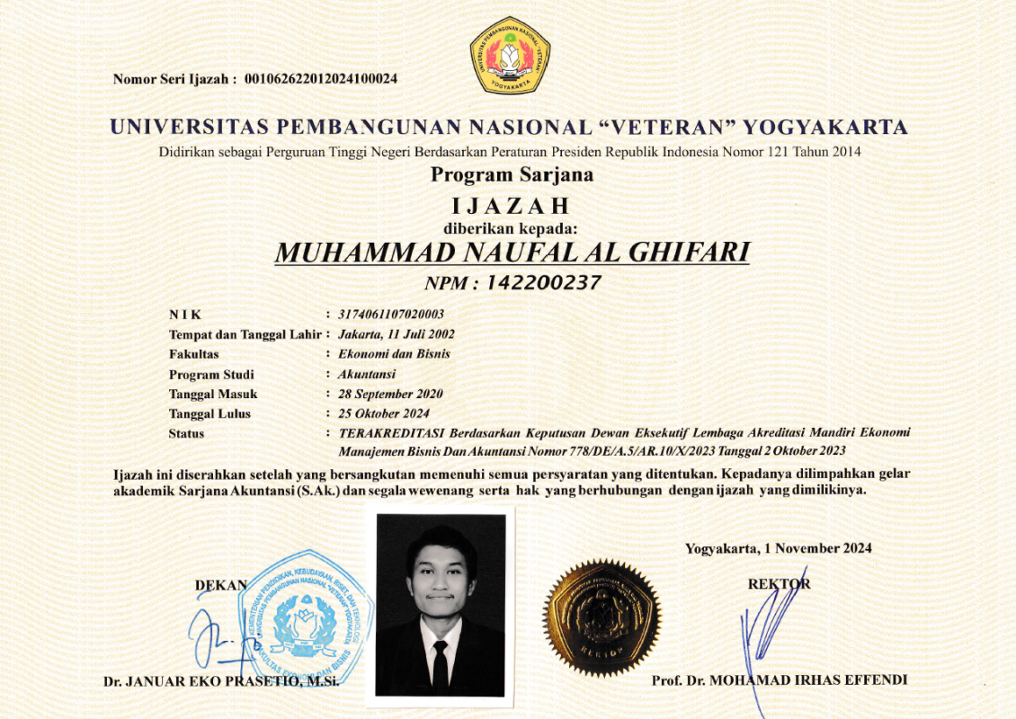 A 2024 accounting graduate from University of Pembangunan Nasional “Veteran” Yogyakarta, Naufal began his professional journey as a finance intern before pursuing a career in tax. Equipped with Brevet A & B certifications and grounded in hands-on financial experience, Naufal leverages his practical insight to deliver effective, client-focused tax solutions.